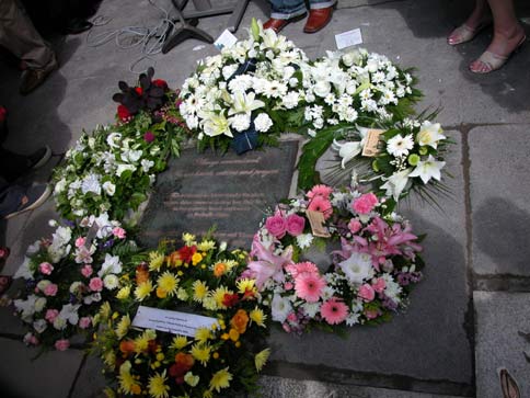Dedication of Memorial to the Victims of the Dublin Bombings of 1972 & 1973 at Sackville Place, 23 July 2004: Wreaths laid at Sackville Place
